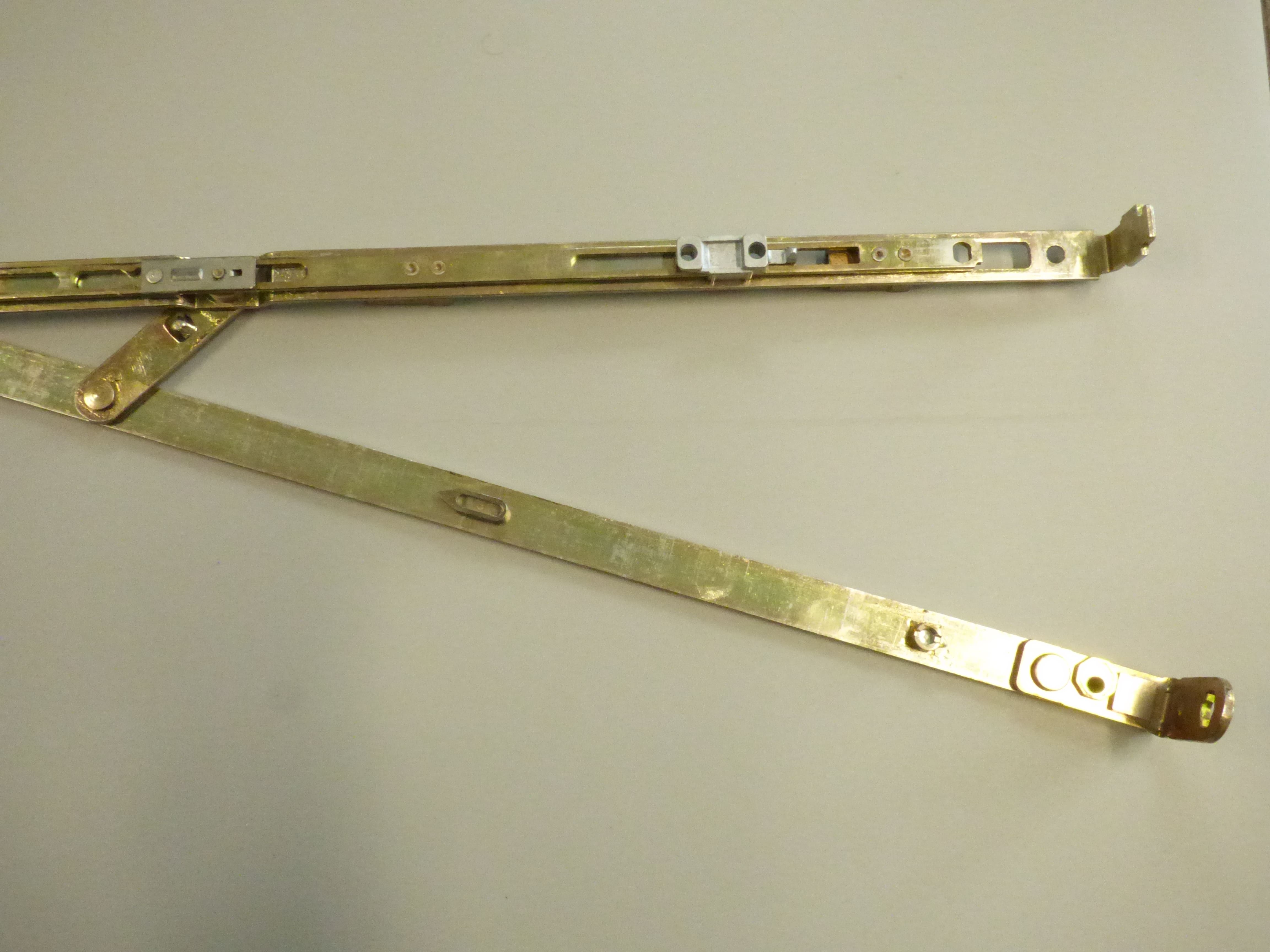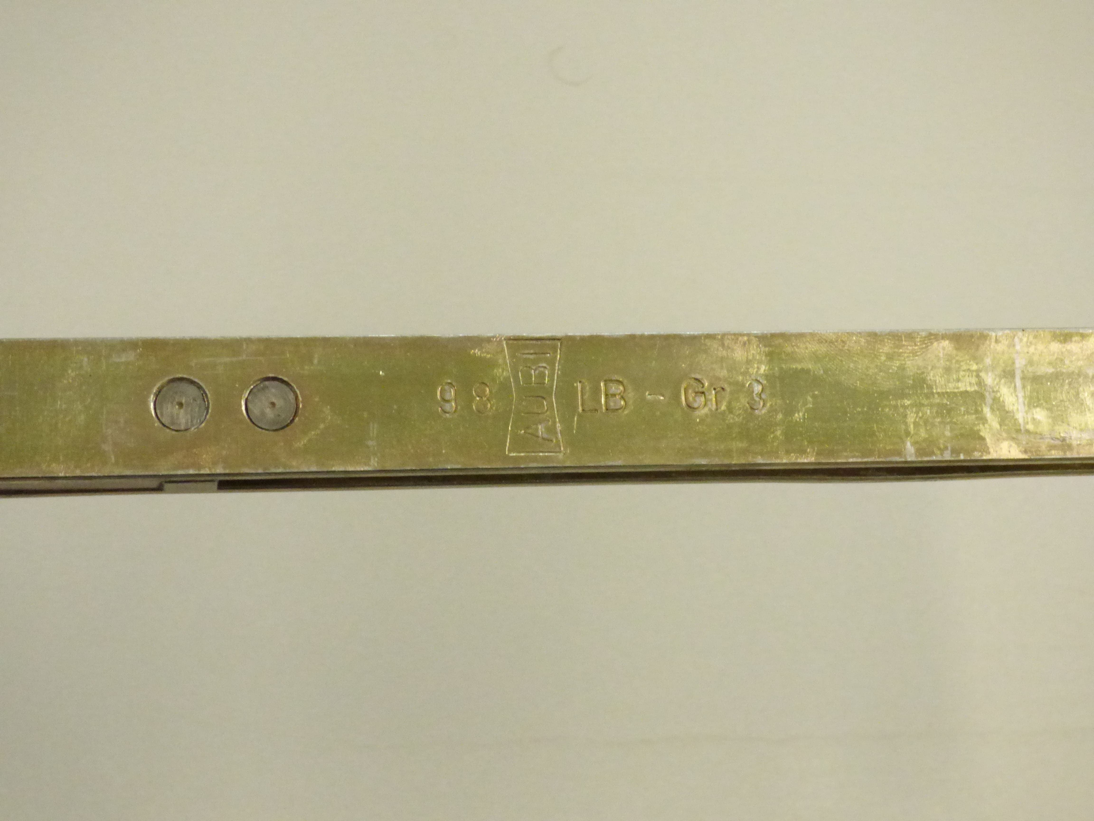 Die Schere ist ein Funktionselement, das an Drehkipp- bzw. Kippflügeln von Fenstern und Fenstertüren verbaut ist. Diese AUBI-Schere ist für alle Holz- und Kunststofffenster geeignet. Die Standardvariante mit Rollzapfen wurde häufig für Fenster aus den Jahren 1985 bis 2005 verwendet. Die Schere ist in den Größen 1,2,3 und 4 erhältlich. Diese AUBI-Schere der Größe 3 hat eine Länge von 105 cm (LB 303).
