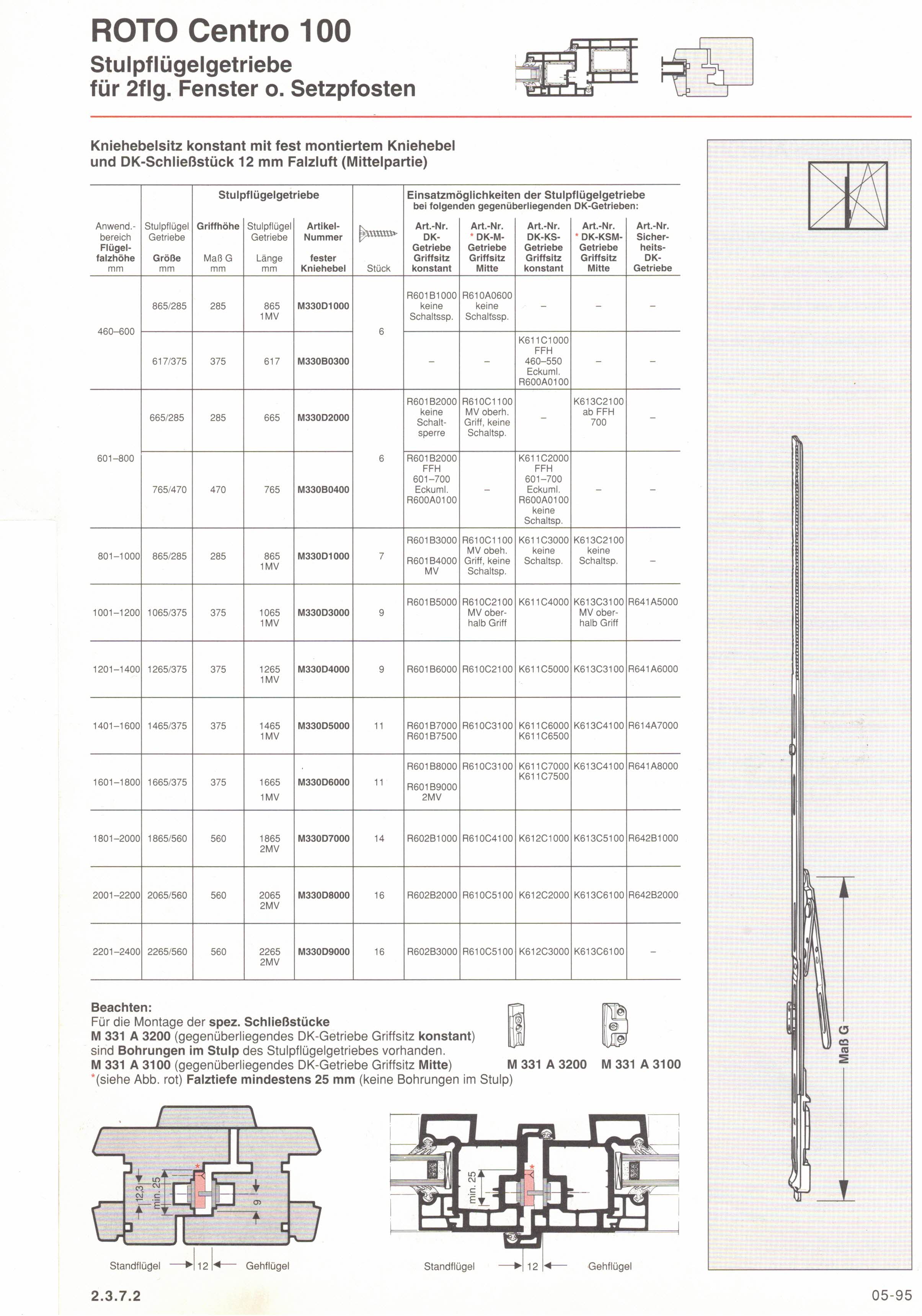 Roto Centro Fenstergetriebe Stulpflügelgetriebe M330 Gr 765